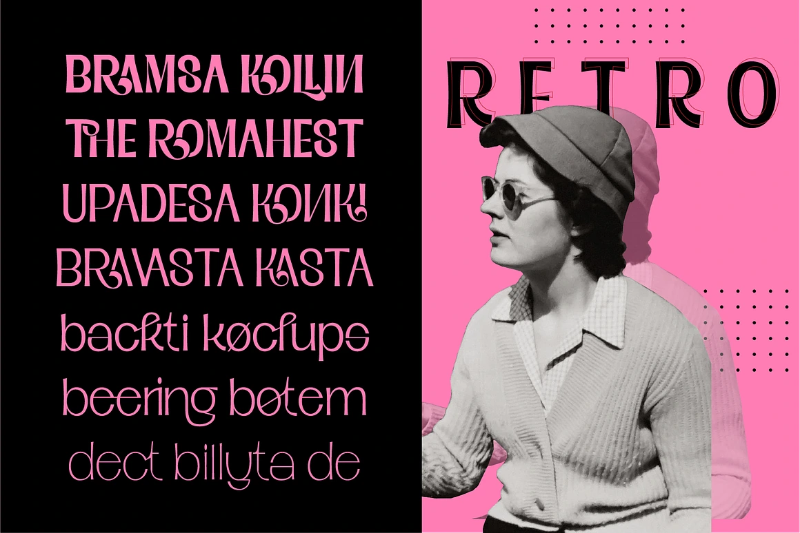 Black Sansa Pro – Retro display font with a full set of uppercase and lowercase letters, multilingual symbols, numbers, punctuation, stylistic set, and ligatures. Black Sansa Pro retro display font style for retro poster, magazine, retro beauty branding design in vintage style suitable for your retro design concept.