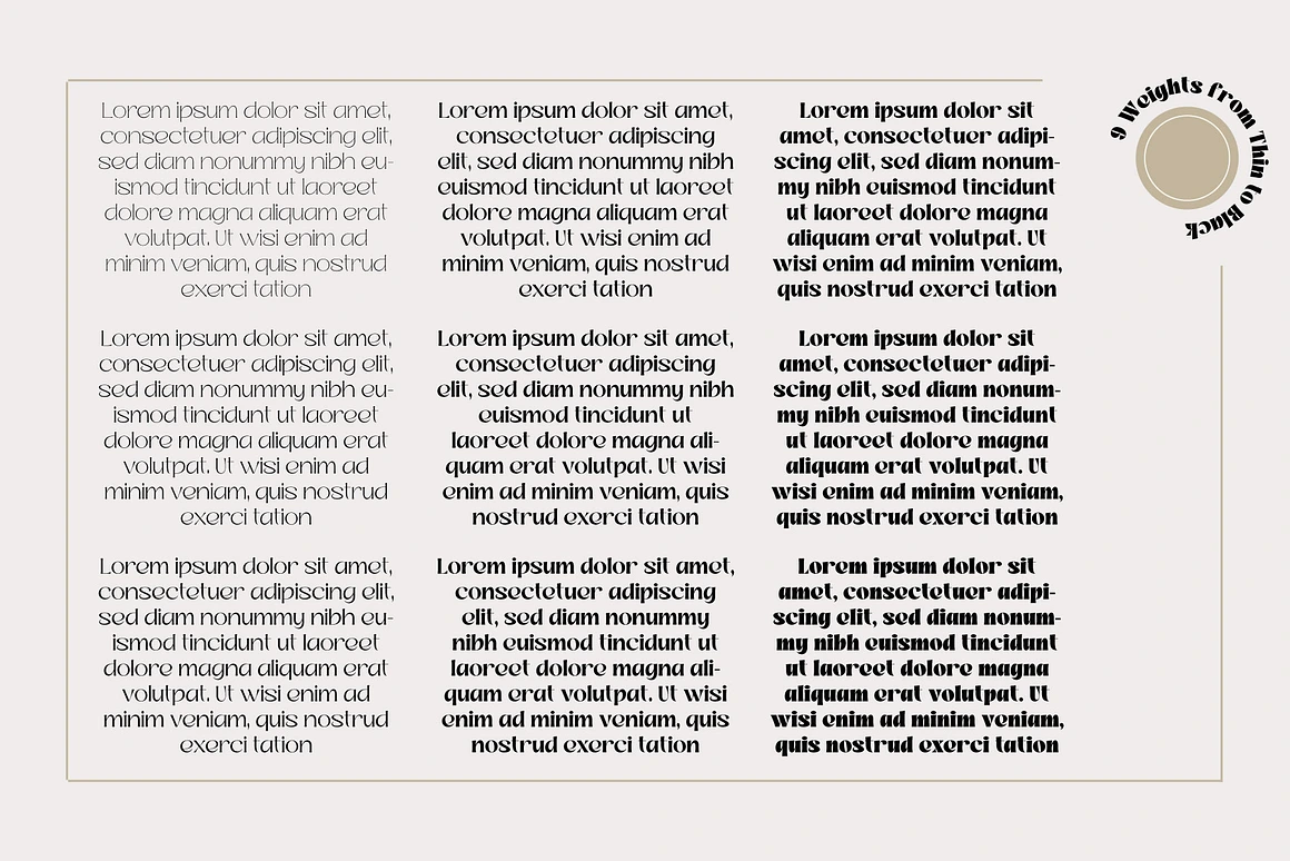 Take your design up a notch with the Kalose Classic Elegant Font Family, a beautifully crafted typography set that achieves flawlessness with each line. Tailored for designers seeking diversity without losing out on sophistication and legibility, Kalose delivers. It offers an impressive range of nine different weights, from Thin to Black, ensuring your design maintains its elegance while adapting seamlessly to any situation or message.