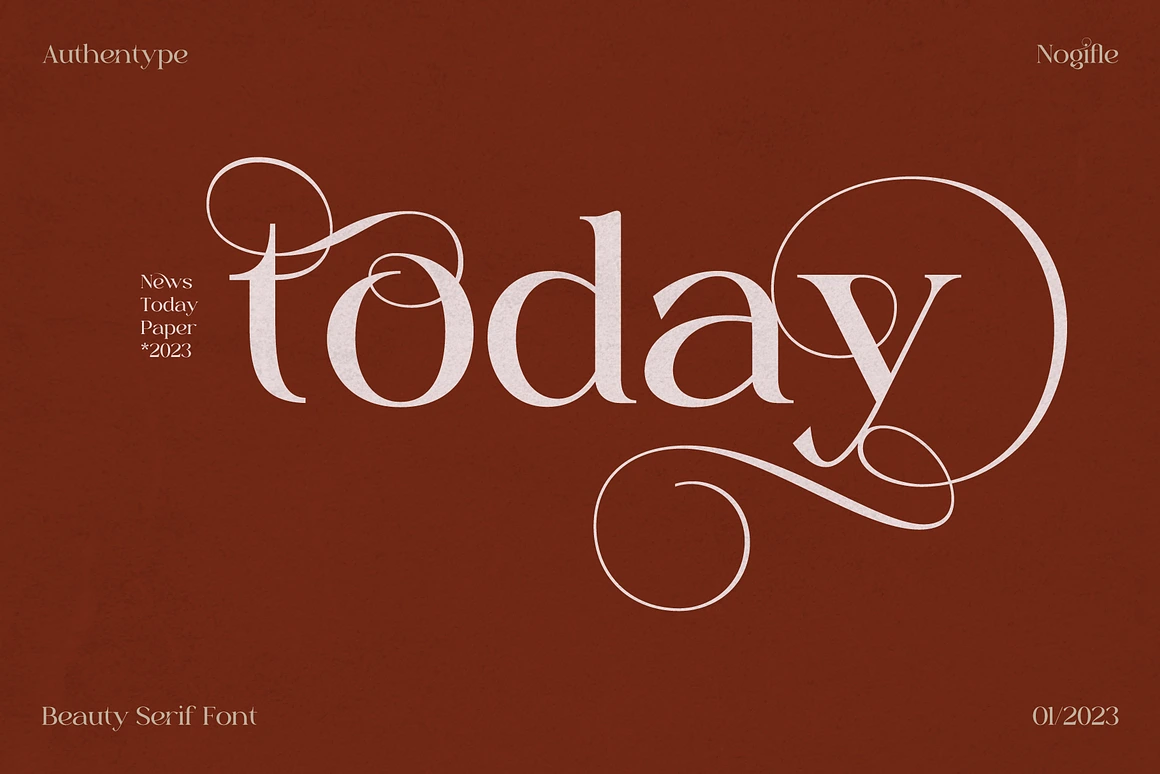 Nogifle Beauty Serif Font, a stunning serif font featuring an abundance of ligatures and rich alternatives.