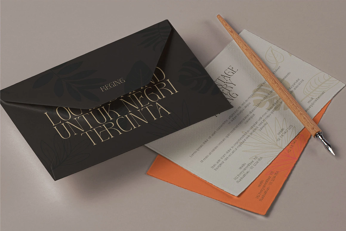 With its versatile style, Reging brings sophistication to brochures, magazines, business cards, invitations, and greeting cards. Whether you’re designing for a beauty brand or creating stylish print layouts, Reging is the font that elevates your project.
