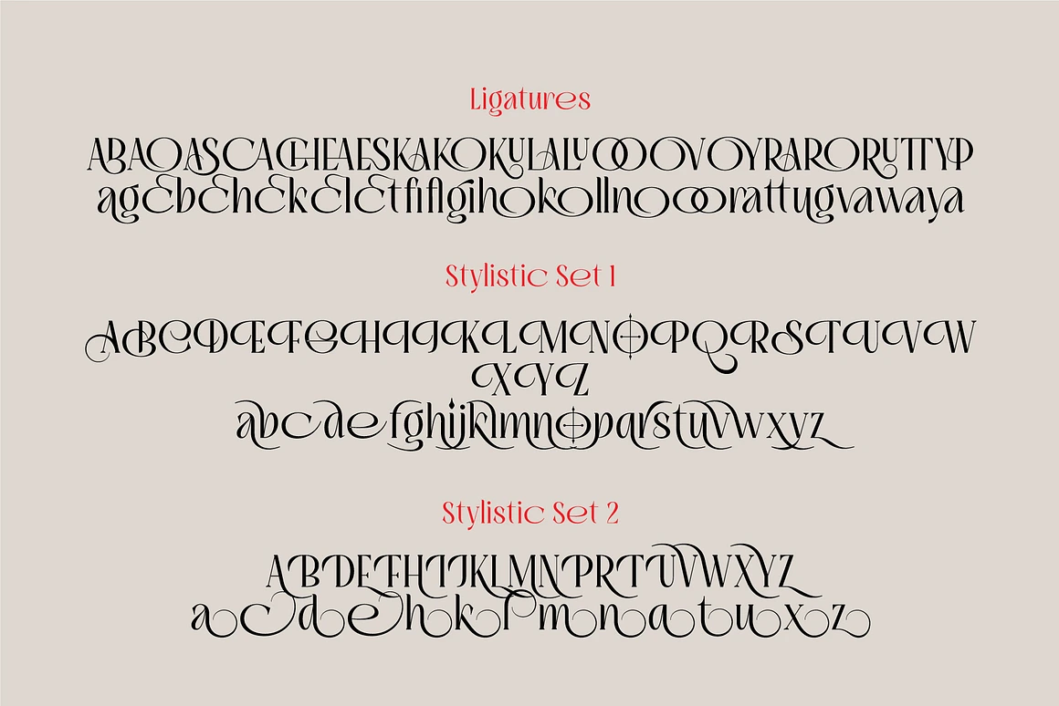 – Documentation.pdf – User guide with instructions on activating Swashes, Stylistic Sets, and Ligatures