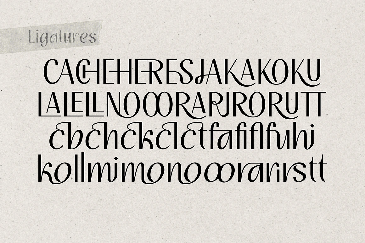 Ligatures: Improve the flow and readability of your text with natural and harmonious ligatures. These thoughtfully designed character combinations enhance the overall aesthetic and ensure seamless letter connections.