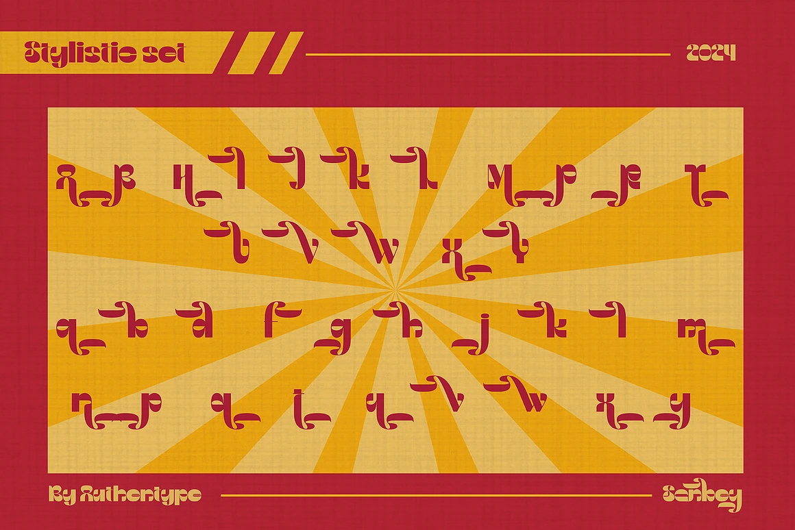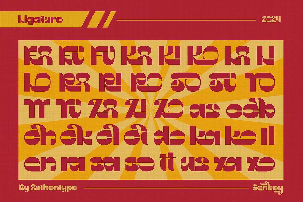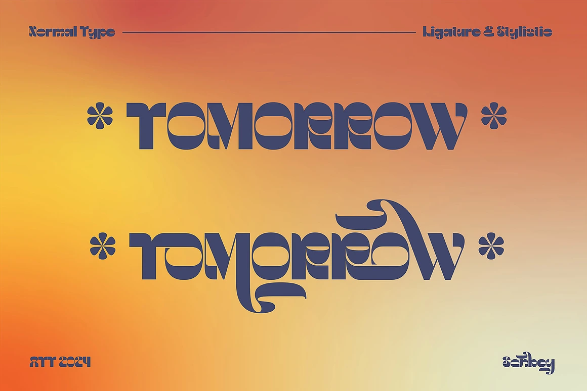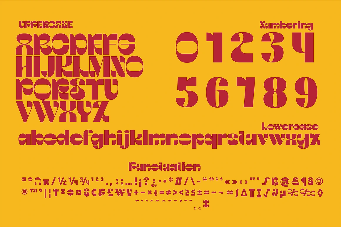 Retro or Vintage Design – Advertisements or posters with a 70s or 80s vibe. Creative Branding – It could be used in logos or branding for fashion, music, or entertainment industries looking to stand out. Poster or Album Cover Design – This bold, distinctive style is perfect for event posters, music festival announcements, or album covers with a vintage theme. Digital Products – Interface or app designs that want to have a retro-futuristic touch. Expressive Typography – Used in headlines or titles that aim to capture attention with a bold and playful flair.