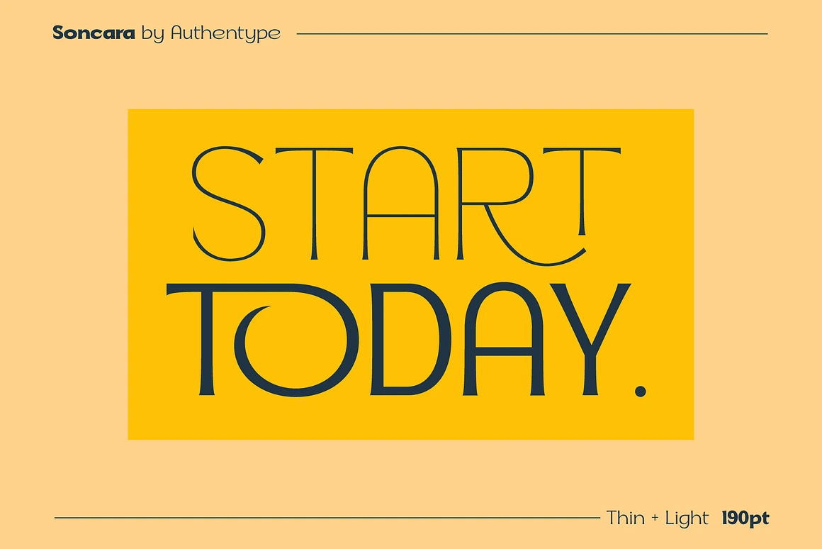 Its unique fusion of futuristic geometry and gentle serif details creates a forward-looking aesthetic that remains warm and approachable. Whether used for logos, titles, or digital interfaces, Soncara font brings a touch of modern luxury and timeless style.
