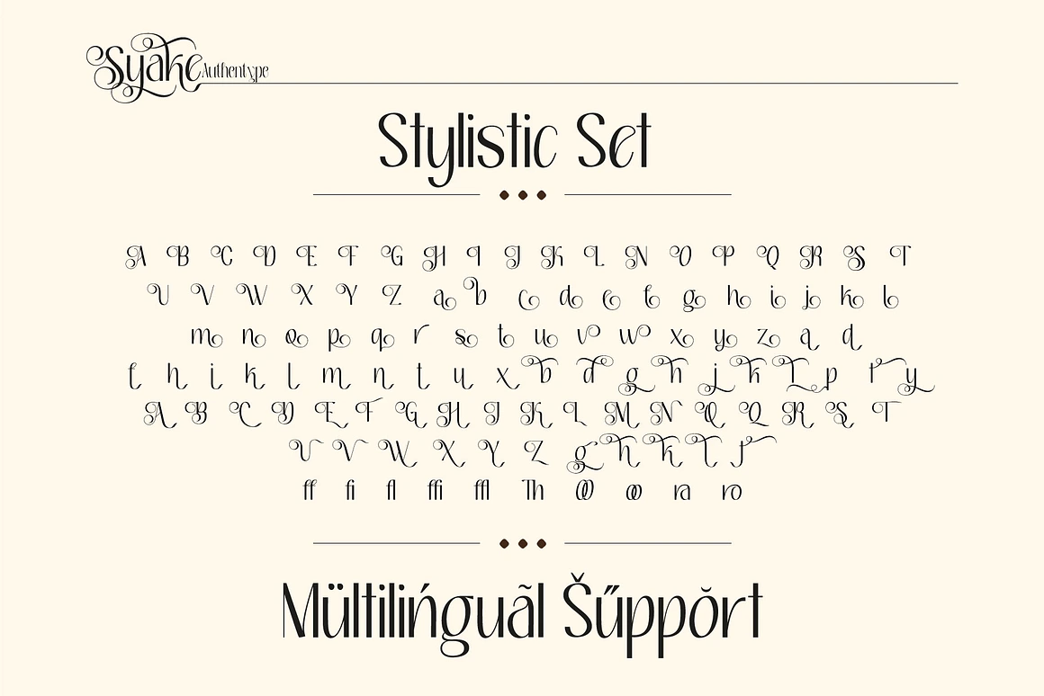 Syake is an beauty branding font  featuring a complete set of uppercase and lowercase letters, multilingual symbols, numbers, punctuation, and beautiful ligatures.