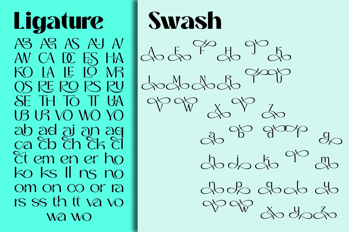 – Exclusive Ligatures: Special letter combinations designed for smooth and aesthetic text flow.